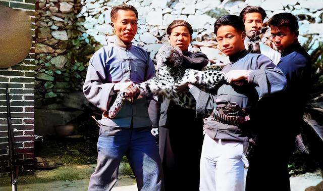 14、1932年,五名猎人抬着一只花豹,向人们展示。